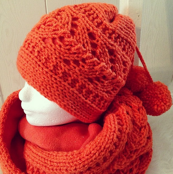 Gepubliceerd 1 mei 2014 at 606 × 607 in Mutsen ← Vorige Gebreide sjaal + muts met pompons en fleece voering. Kleur: oranje. Vind-ik-leuk Aan het laden...